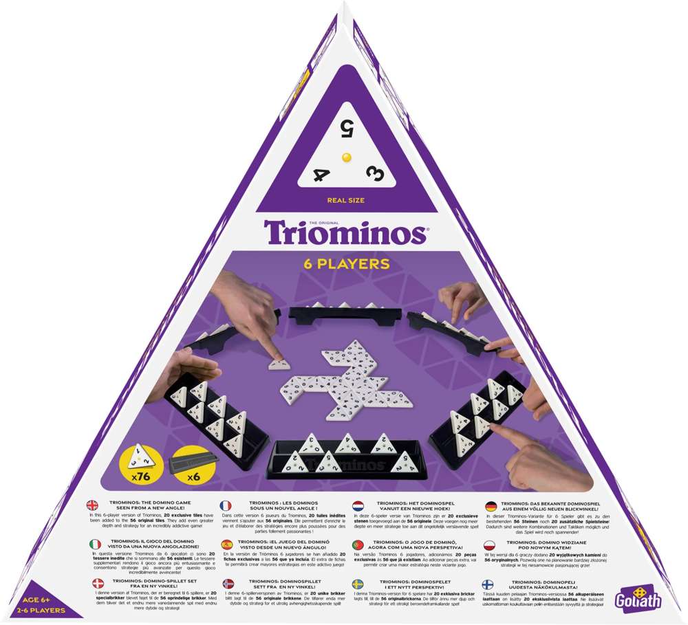 Egal, ob du eine Party organisierst oder dich einfach mit Freunden und Familie triffst, "Triominos 6 Spieler" ist ideal als Spiel für grössere Gruppen. Geniesse die Geselligkeit und den Spass dieses spannenden Spiels und schaffe gemeinsam mit deinen Mitspielenden unvergessliche Erinnerungen.