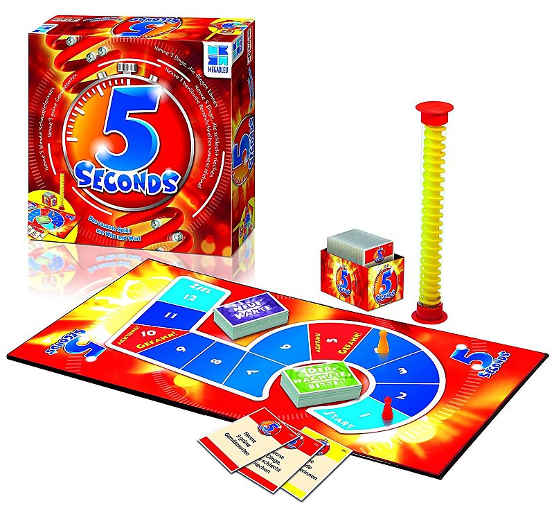 5 Seconds. Ein kurzweiliges, ransantes und vergnügtes Spiel für Schnelldenker und Schnellsprecher. Manchmal muss man sogar schneller antworten als denken.