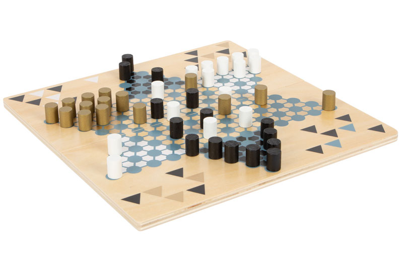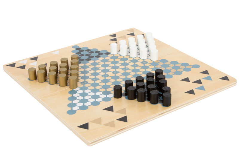 Klassisches Halma auf der einen und Barrikade auf der anderen Seite des Spielbrett.