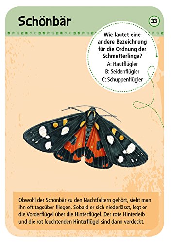 Dieses kompakte Wissenspaket beschreibt a uf 50 Karten die Schmetterlinge mit einer naturgetreuen Illustration und einem Steckbrief mit Informationen zu Gruppe, Flugzeit und Lebensraum.