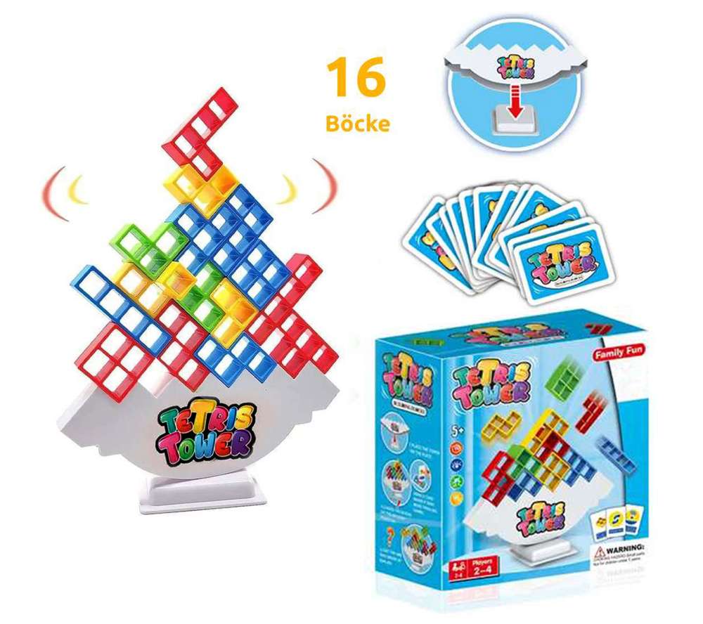 Tetra Tower (auch Tetris Tower genannt) ist eine Kombination aus Tetris und Balance Spiel. Es ist bekannt aus Social Media. Version mit 16 Blöcken.