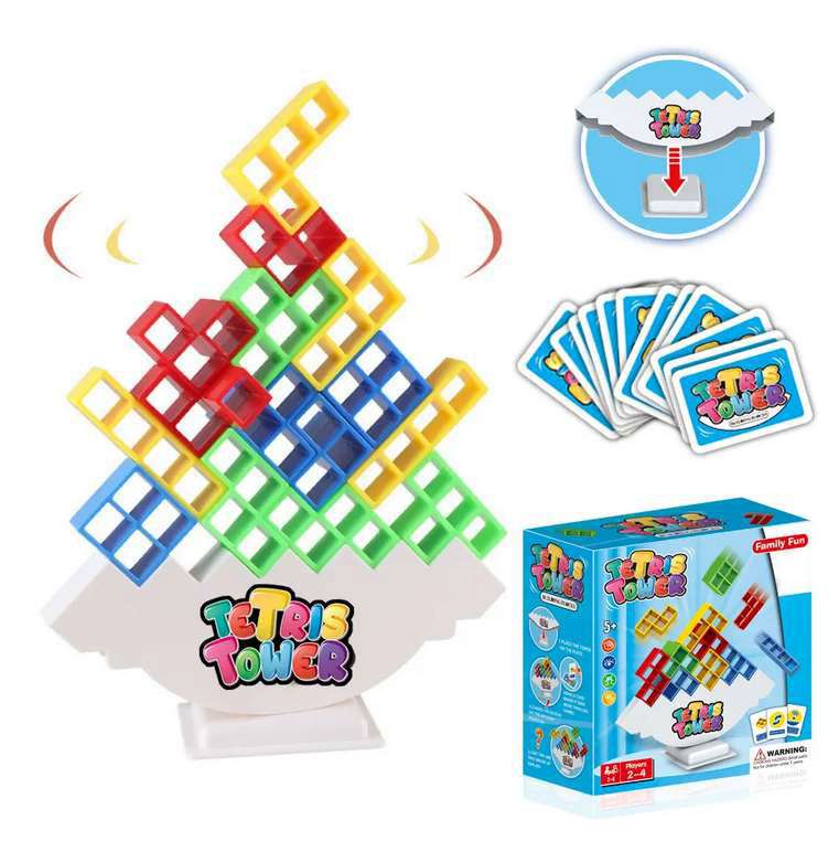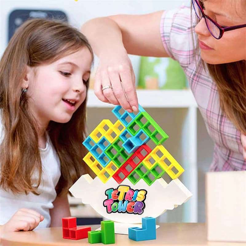 Wie viele Bausteine kannst du stapeln, bis der Turm umfällt? Finde es heraus. Hier kannst du das Tetra Tower Balance Spiel kaufen.