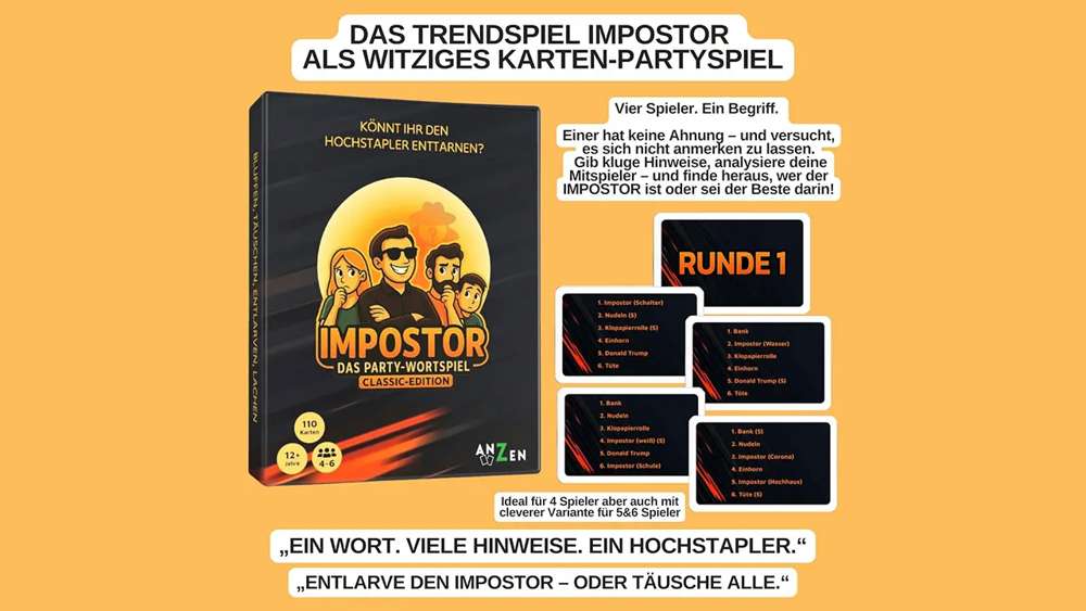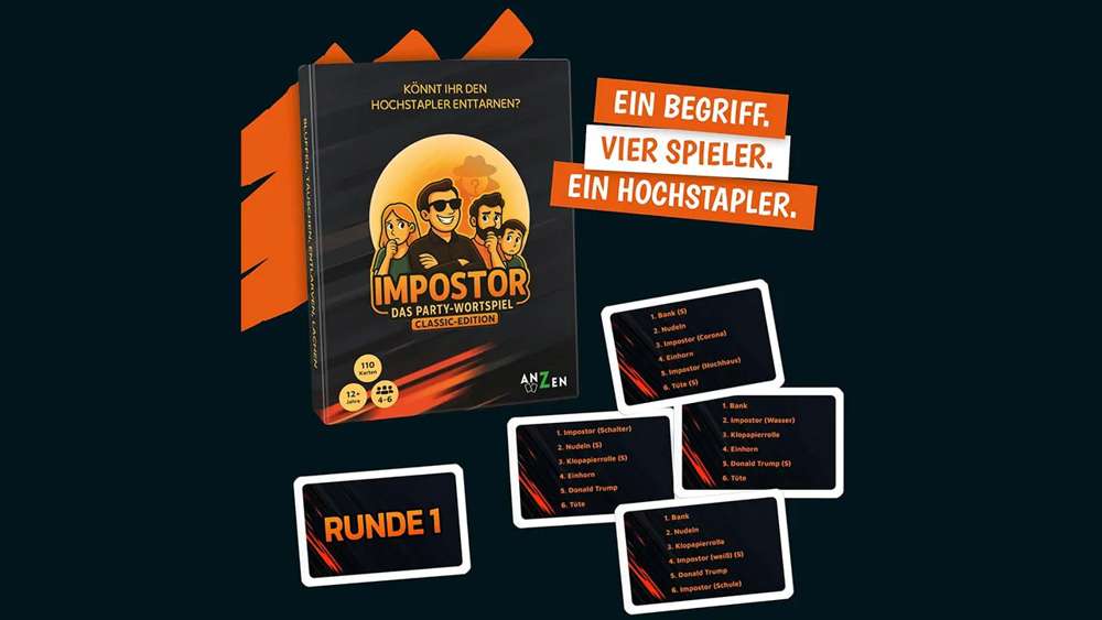 Beim Wortspiel "Impostor" geht es darum, den/die Hochstapler/in in der Runde zu finden. Diese Person versucht, sich nichts anmerken zu lassen und sammelt Informationen, um den Spiess umzudrehen! Das Motto lautet: Bluffen, Raten, Täuschen, Entlarven, Lachen.