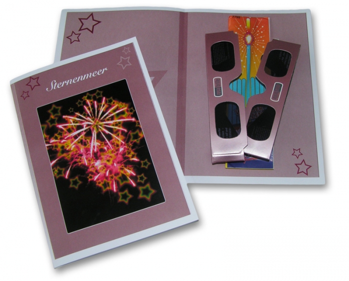 Beim Blick durch die Spezialbrille verwandeln sich Leuchtquellen in ein Meer aus Sternen. Sobald Sie mit der Rosabrille in sprühende Wunderkerzen, Flammen von Kerzen auf der Geburtstagstorte, Strassenlampen, Lichterketten oder Feuerwerke schauen, werden Sie von dem sagenhafte Effekt überrascht sein.