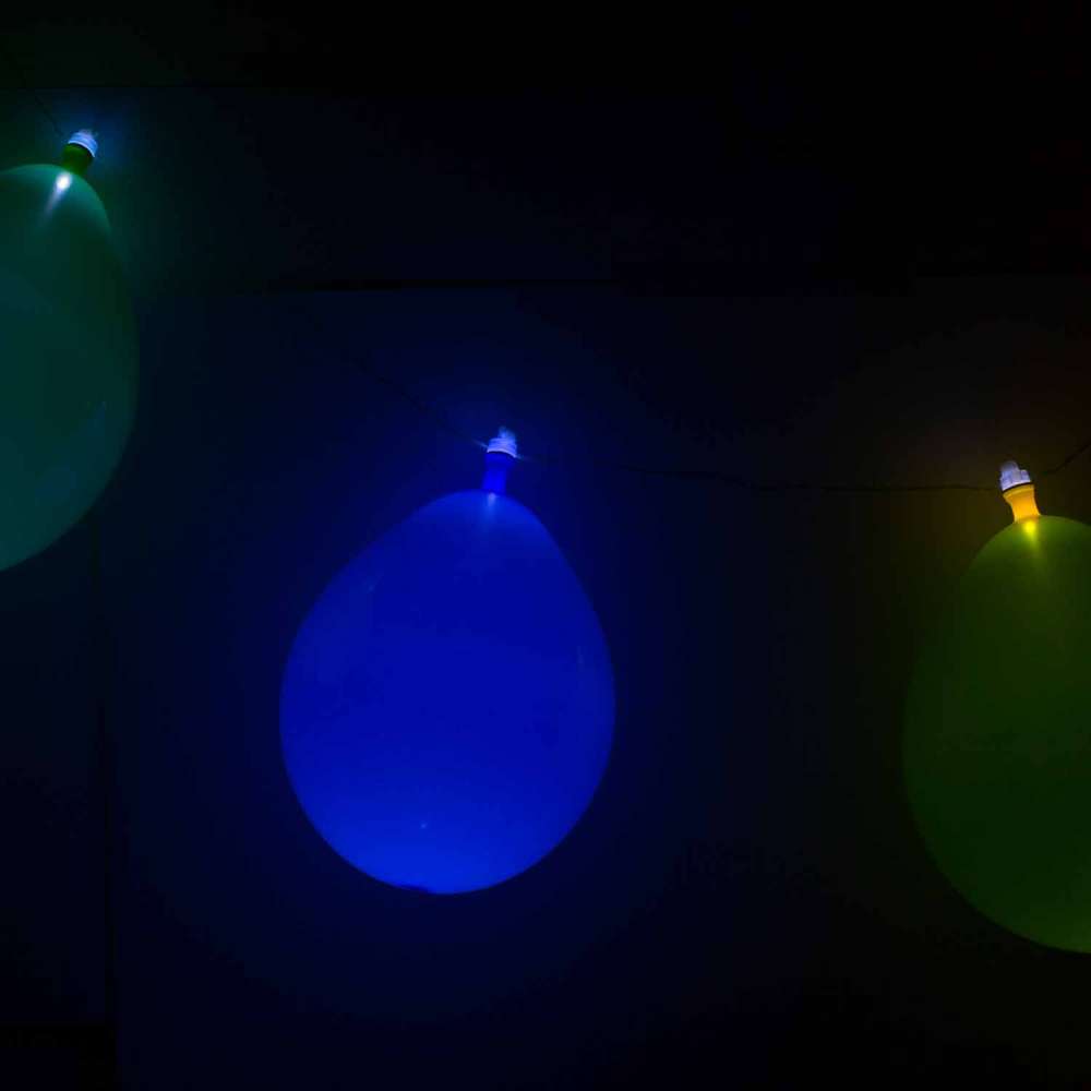 Keine Zeit, Ballone aufzublasen für die Party? Einfacher geht's mit der Ballon Lichterkette. Sie besteht aus 10 LED-Ballons, die auf einer Schnur aufgereiht sind. Einfach aufblasen, die Schnur aufhängen und einschalten - fertig ist die perfekte Partydeko.