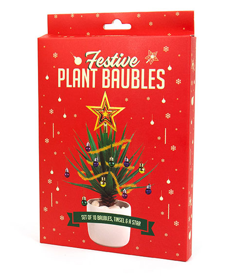 Mit diesem Christbaumschmuck für Zimmerpflanzen können Sie Ihre Pflanze mit Kugeln, Lametta und einem Stern für die Spitze verzieren.