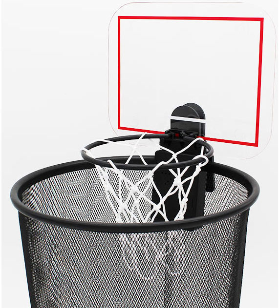Dieser Basketballkorb ist ein amüsantes Geschenk, welcher an jedem Arbeitsplatz Kurzweil bringt.