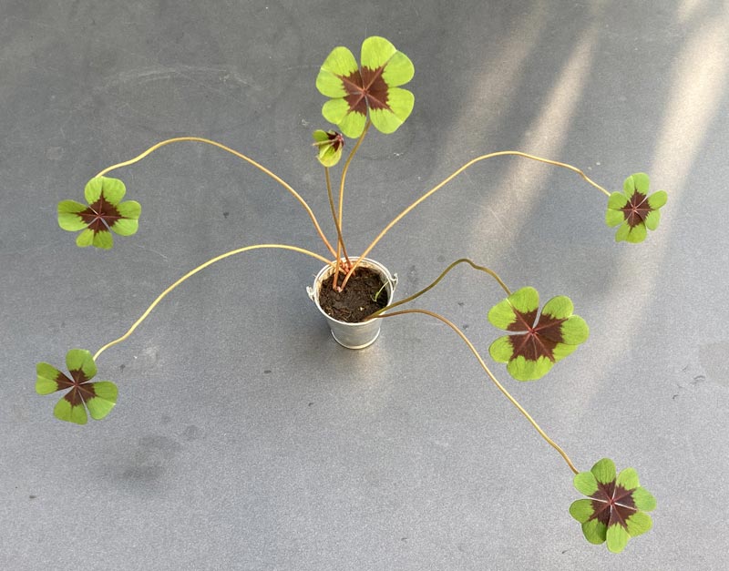Zink-Eimer für Kräuter: vierblättrige Kleeblätter.