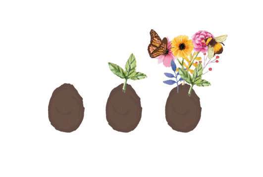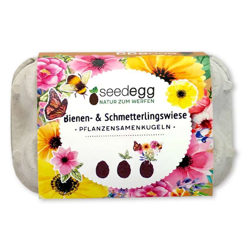 Wenige Tage nach dem Angiessen bricht das Natur-Ei langsam auseinander und die ersten grünen Pflänzchen spriessen nach und nach aus der Samenkugel. Mit etwas Geduld, wird aus den grünen Pflänzchen eine kleine Blumenwiese, die nach wenigen Monaten die ersten Blüten bildet. Setzt die Blüte ein, wird aus der Wiese ein nahrhaftes Mini-Paradies für Bienen, Schmetterlinge und viele andere nützliche Insekten.