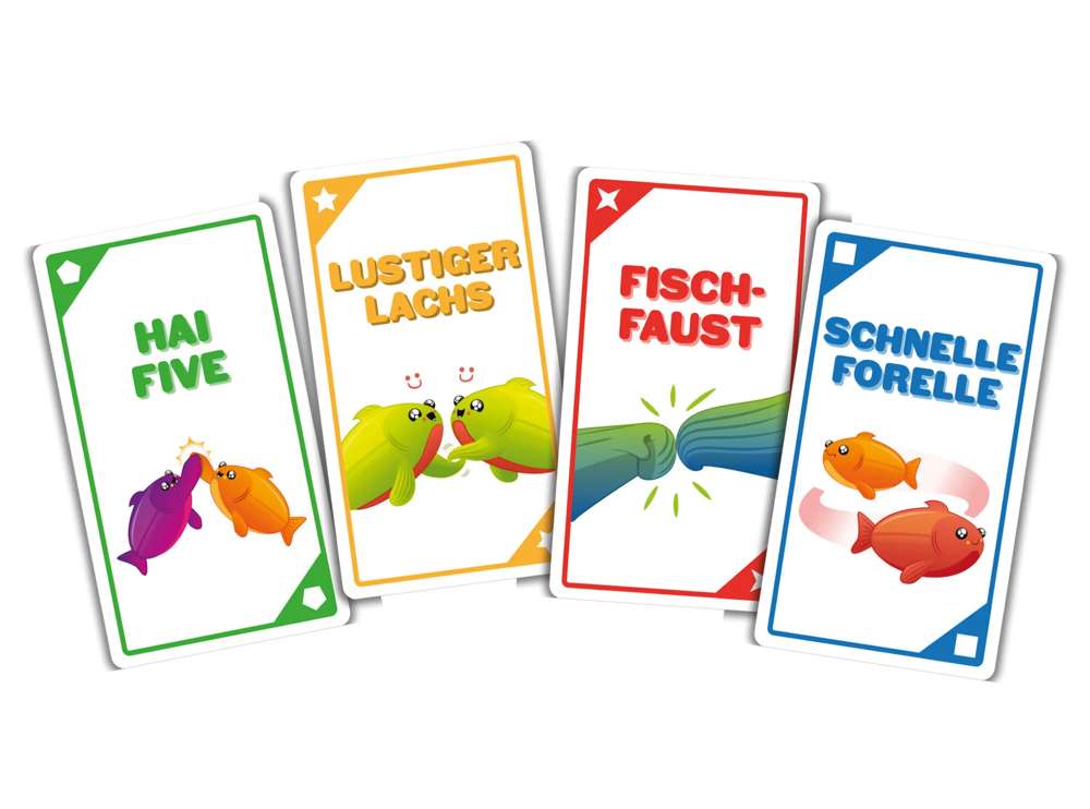 1. Auf jeder Karte steht eine Aktion, die man nur zu zweit machen kann (Hai Five, Fisch-Faust, Lustiger Lachs)