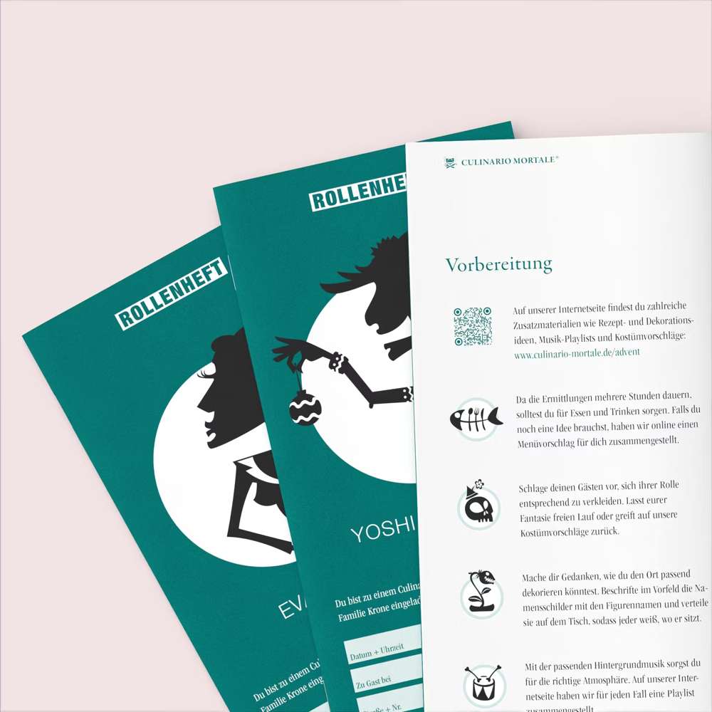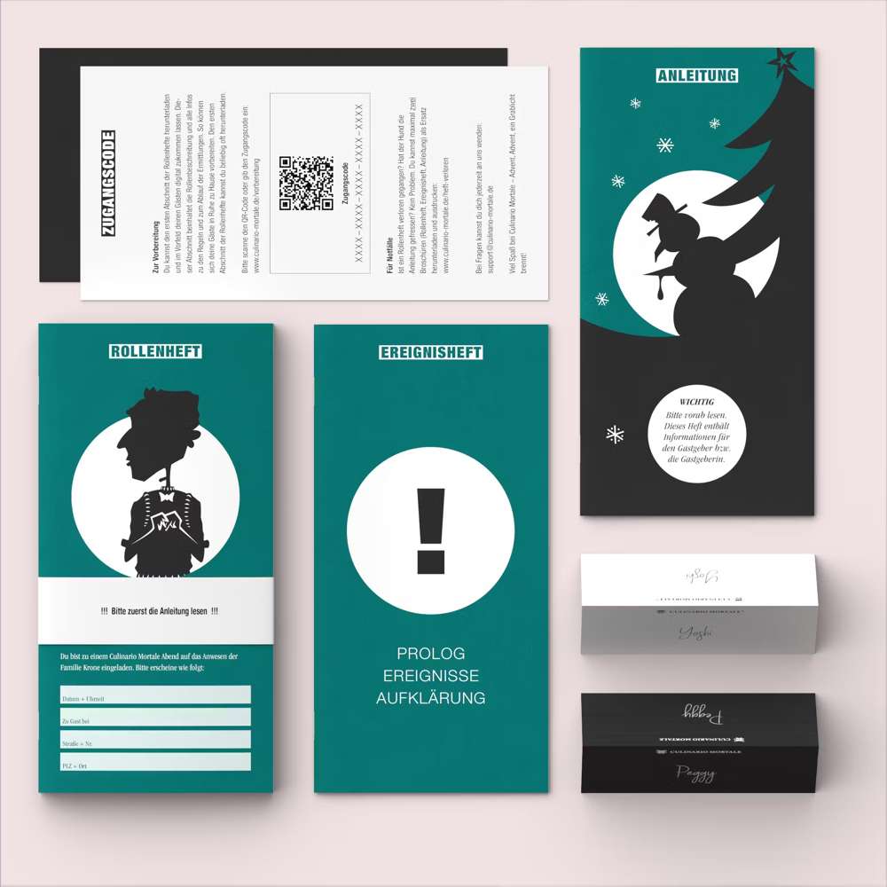 Die Spiele von Culinario Mortale fallen sofort ins Auge. Das schlichte, moderne Design macht gluschtig auf die neuen Krimidinner.