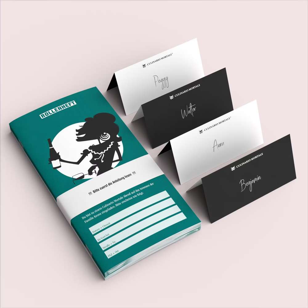 - enthält alles, was du für ein Krimidinner für Zuhause brauchst