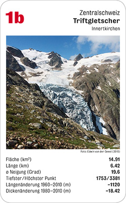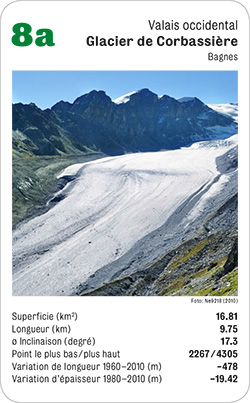 Das Gletscherquartett besteht aus 32 Karten. Vor Spielbeginn können die Spielenden bestimmen, ob bei den jeweiligen Kategorien der höchste oder geringste Wert gewinnen soll.