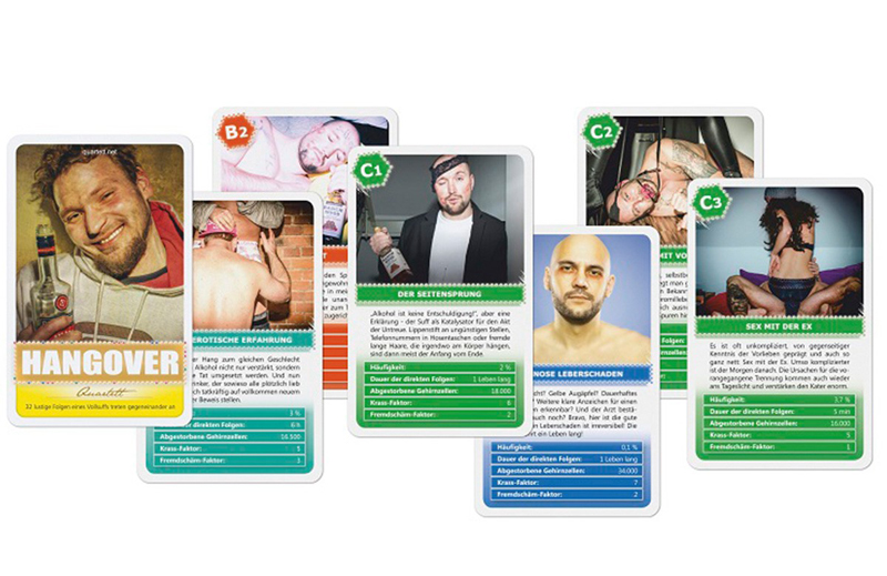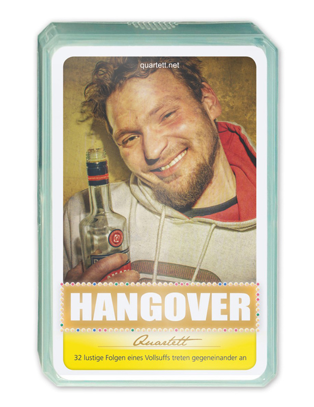Das Hangover-Quartett ist ein unterhaltsames Geschenk für erwachsene Quartett-Freunde und feuchtfröhliche Runden, in denen man sich mit den irrsten Kater-Erlebnissen wichtig macht.