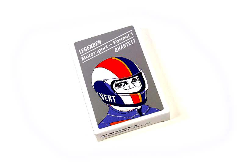 Das Quartett besteht aus 40 mehrfarbigen Karten. Vor Spielbeginn können die Spielenden bestimmen, ob bei den jeweiligen Kategorien der höchste oder geringste Wert gewinnen soll. Variante: Es können aber auch die einzelnen Länder gesammelt werden, wer alle vier Spieler eines Landes besitzt, kann dieses abgelegt werden. (Für die Schweiz fahren Jo Siffert, Jacky Ickx, Clay Regazzoni und Ronnie Peterson. Wer am Ende am meisten Länder besitzt, hat das Spiel gewonnen.
