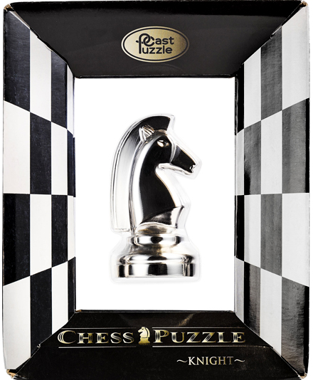 Das Cast Chess Puzzles Knight, Schachfigur Springer ist Teil der sechsteiligen Chess-Puzzle-Reihe von Hanayama. Jede Schachfigur enthält im Inneren eine Münze die es zu befreien gilt.