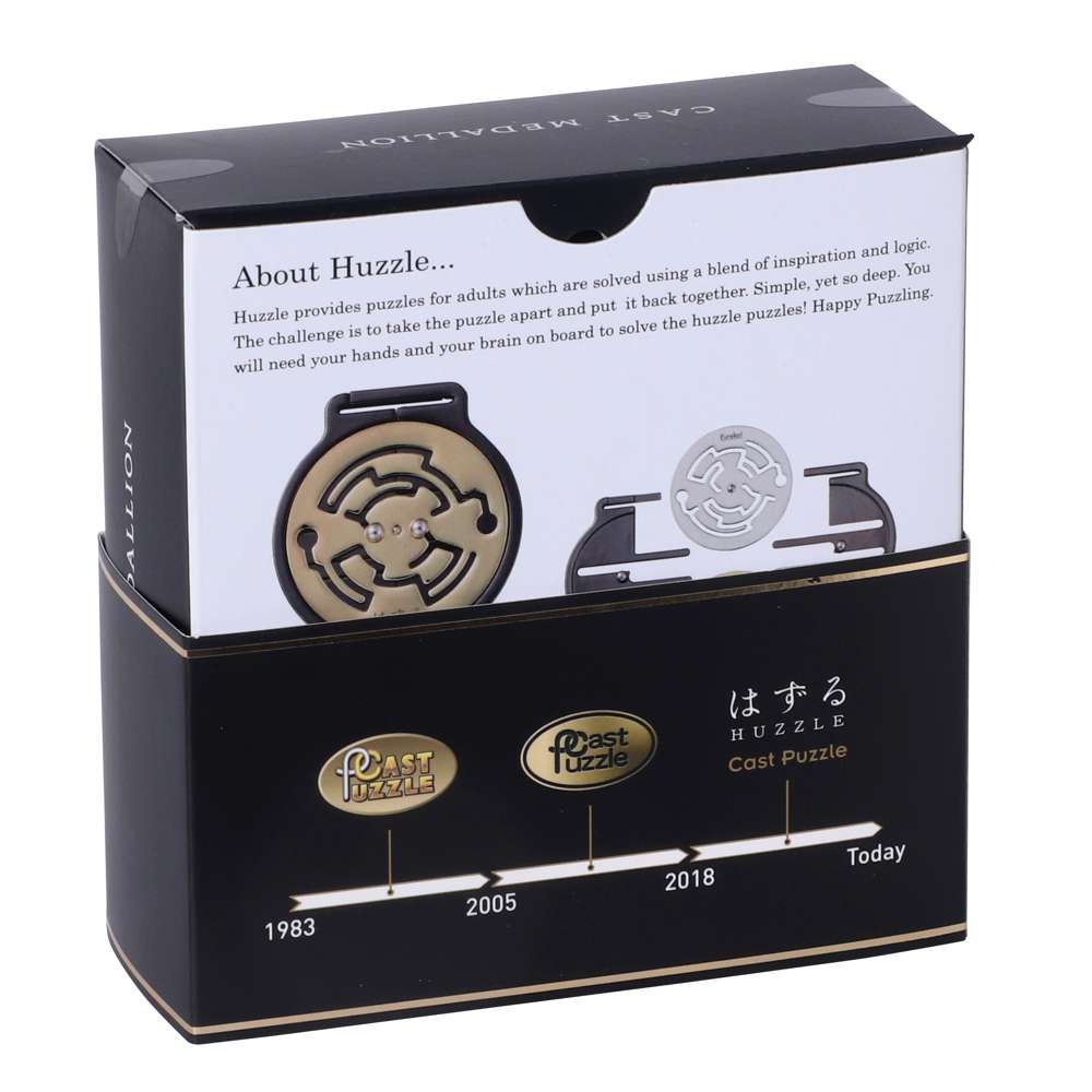 Aufgabe der verzwickten Metallpuzzles ist es, die Teile voneinander zu lösen und wieder zusammen zufügen. Der Name setzt sich zusammen aus 'HUZZLE' von 'to hug and nuzzle' (=umarmen und liebhaben) und 'to cast' (= Metall giessen). Die Puzzles werden aus Giesszink gegossen.