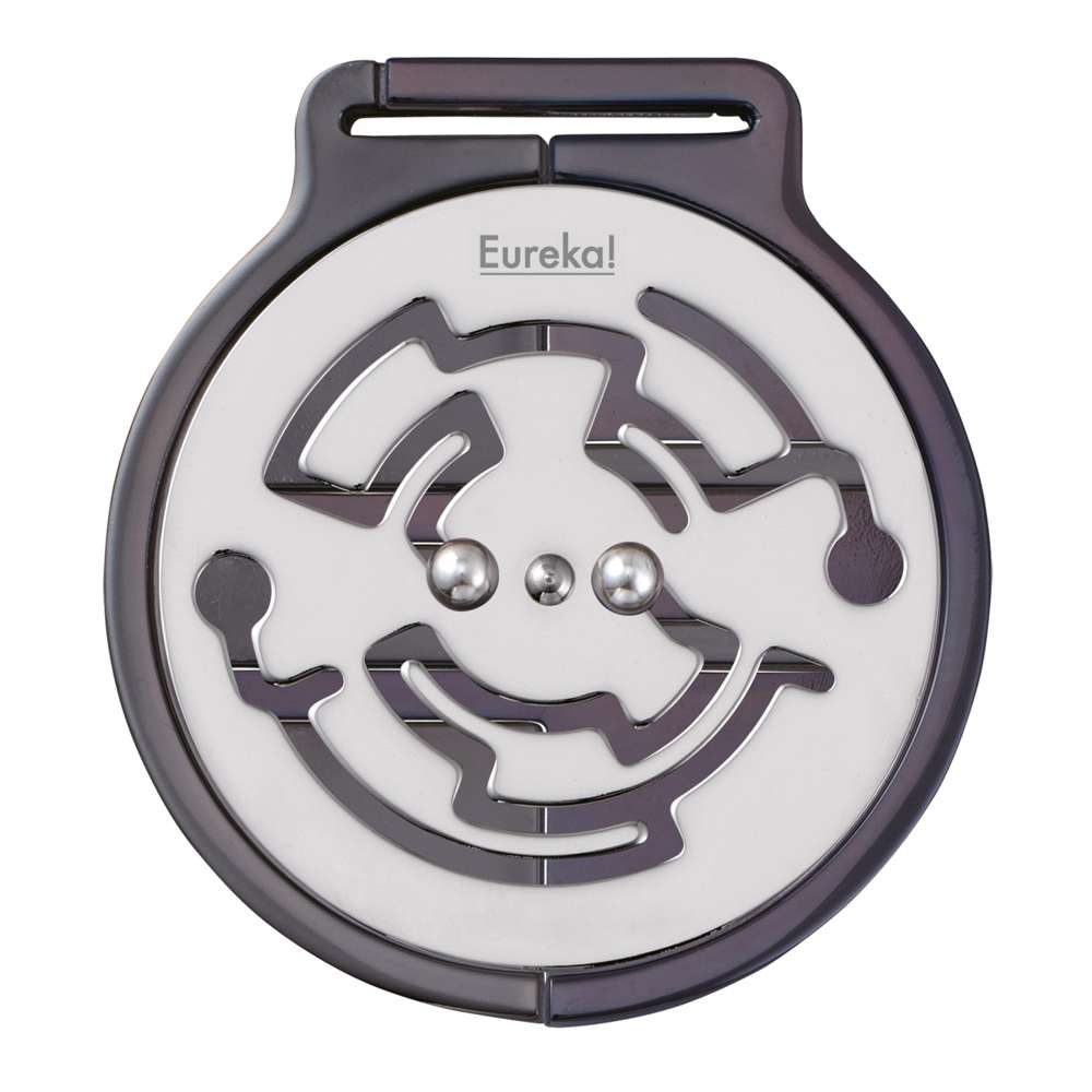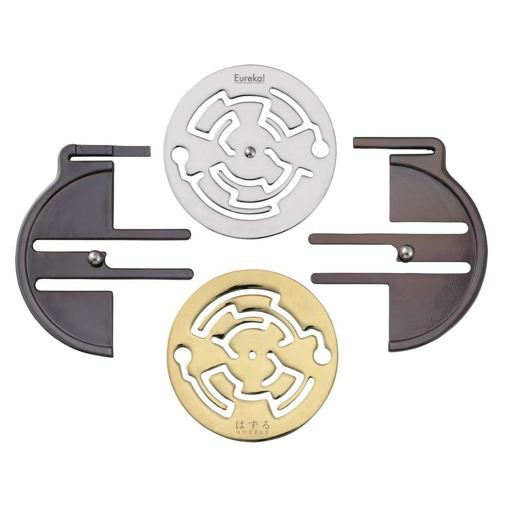 Dieses Medallion ist ein komplexes Labyrinth-Puzzle mit Scheiben, die scheinbar untrennbar miteinander verbunden sind. Drehen Sie die goldene und silberne Scheibe damit sich die mittleren schwarzen Teile nach aussen bewegen. Wenn du versuchst, eine Abkürzung zu nehmen, wirst du in eine Sackgasse geraten.