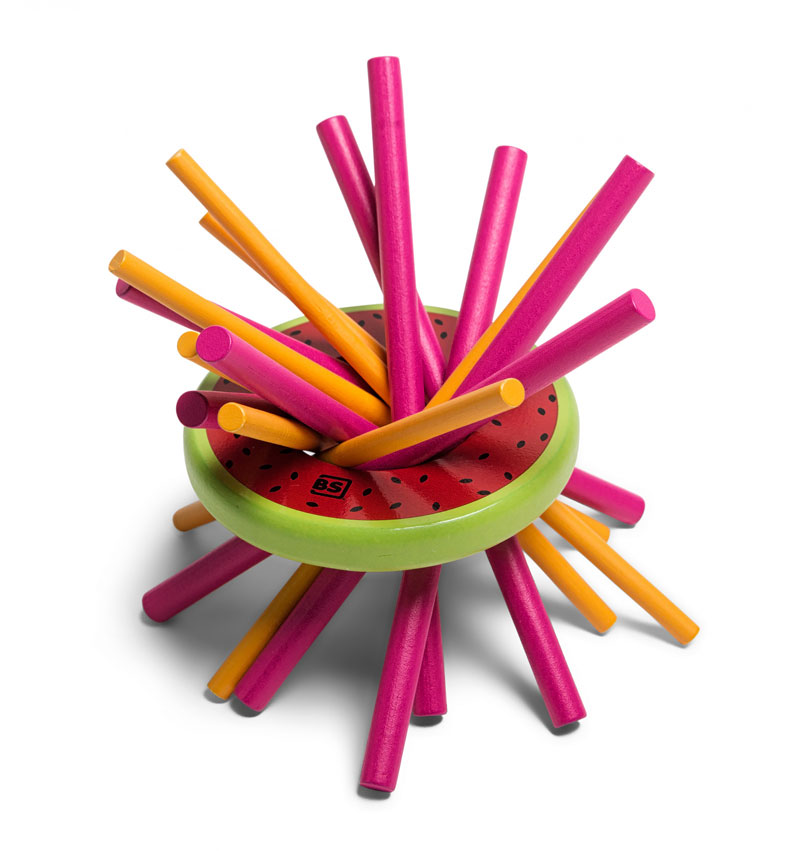 Das Geschicklichkeitsspiel „Mikado Melon“ ist eine neue Innovation des bekannten Klassikers.