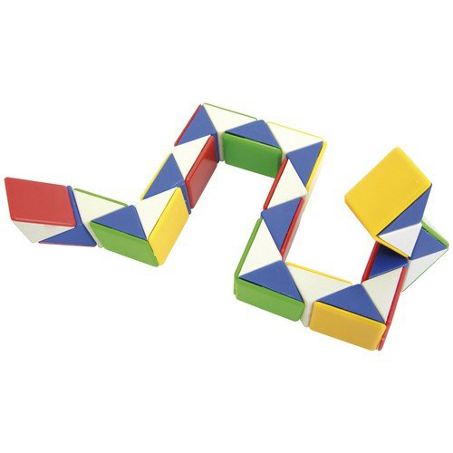 Das Schlangen Puzzle ist ideal für unterwegs. Die dreieckigen, farbigen Elemente sind so miteinander verbunden, dass durch geschicktes Drehen eine Vielzahl von verschiedenen Figuren möglich sind. Das Schlangen Puzzle fördert die Vorstellungskraft und das räumliche Denken.