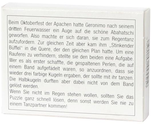 Damit Geronimo am Regentanz teilnehmen darf, muss er erst seine Halskette richtig auffädeln. Er darf dabei die sechs Perlenhälften aber nicht von der Schnur lösen.