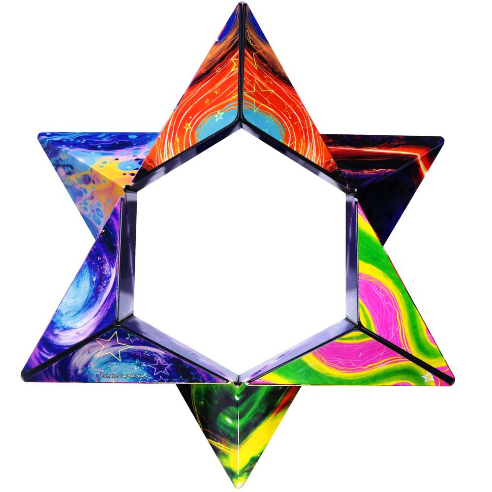 Shashibo, der Nachfolger von GeoBender, hier mit dem Motiv Cosmos aus der Serie Holographic 2.0. Bring die verschiedenen holografischen Muster mit kosmischen Motiven zum Vorschein und bilde geometrische Formen. Wie die anderen Holographic-Shashibos leuchtet auch dieser unter UV-Licht.