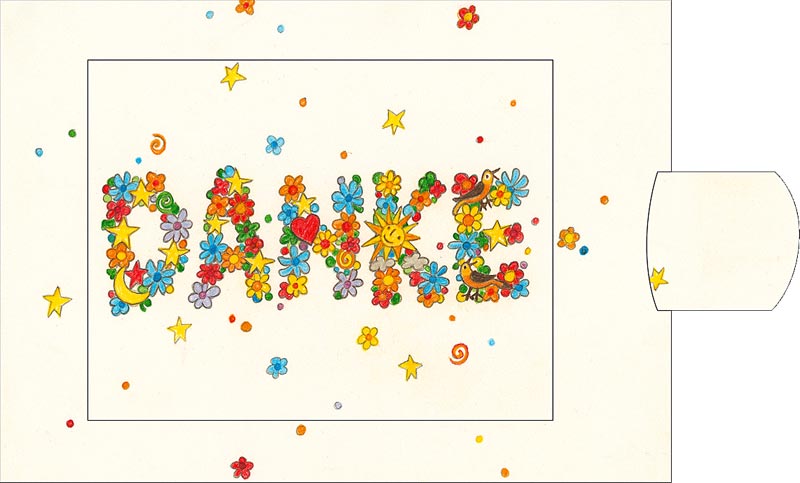 Bei der Lebenden Karte Danke handelt sich um eine Klappkarte, die in einen Standard DIN A6 Briefumschlag passt. Die Lebende Karte eignet sich auch hervorragend als Geschenkbeilage und als kleine Überraschung.