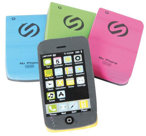 Radiergummi in Form eines Smartphone (der iRadierer) mit verschieden farbigen Backcovers. Preis pro Stück.