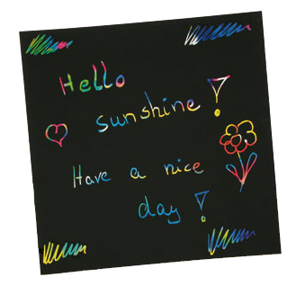 Das Experimentieren mit Kratzpapier macht grossen Spass! Mit einem Holz, Fingernagel oder einem spitzen Gegenstand kannst du auf das schwarze Papier malen, schreiben und kratzen.