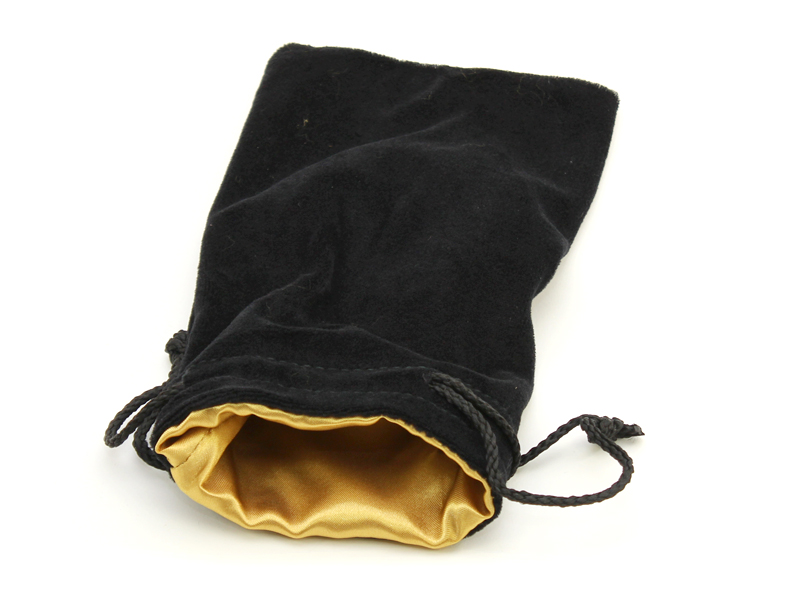 Weiterführende Links zu "grosser Würfelbeutel aus schwarzem Samt, goldfarbenes Futter"