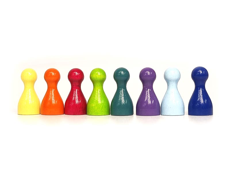 Die Spielfiguren sind 20mm hoch und haben einen Durchmesser von 10mm.