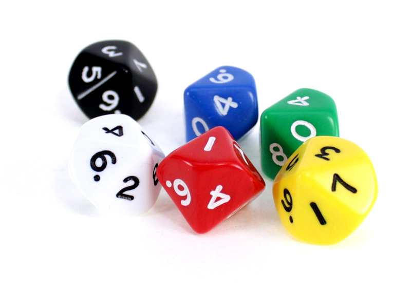 Würfel mit 10 Flächen Opaque. Angezeigte Ziffern 0 bis 9. In 11 verschiedenen Farben erhältlich.... mehr